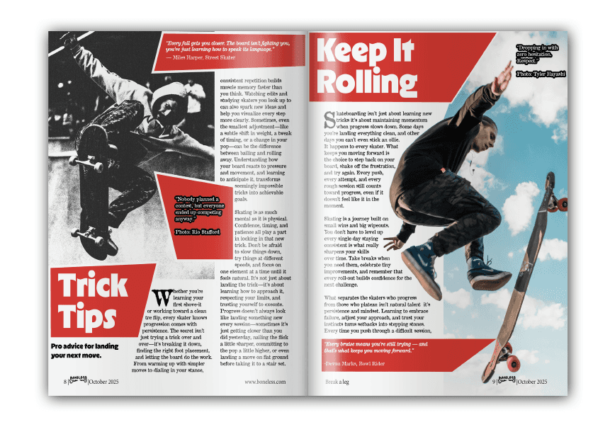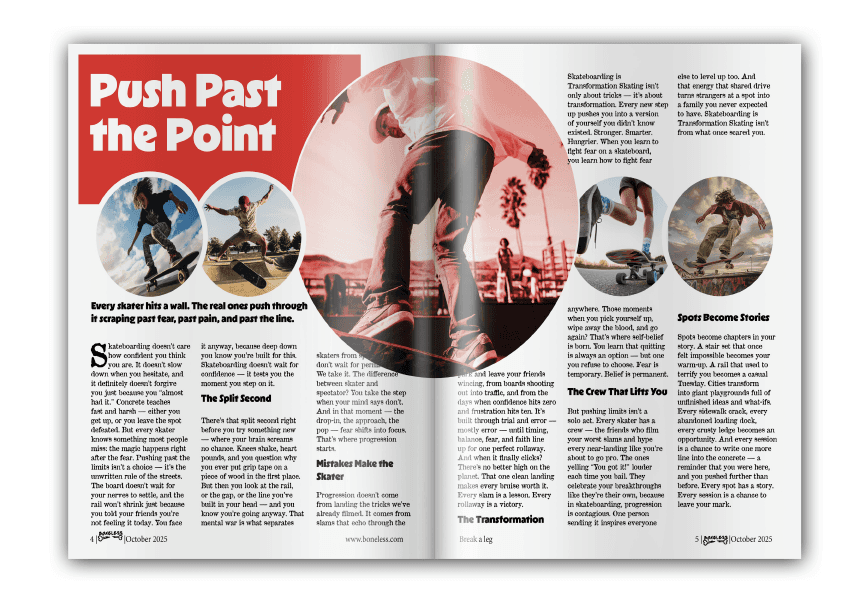 Boneless magazine was created through a focused design process rooted in skateboarding culture and movement. Research