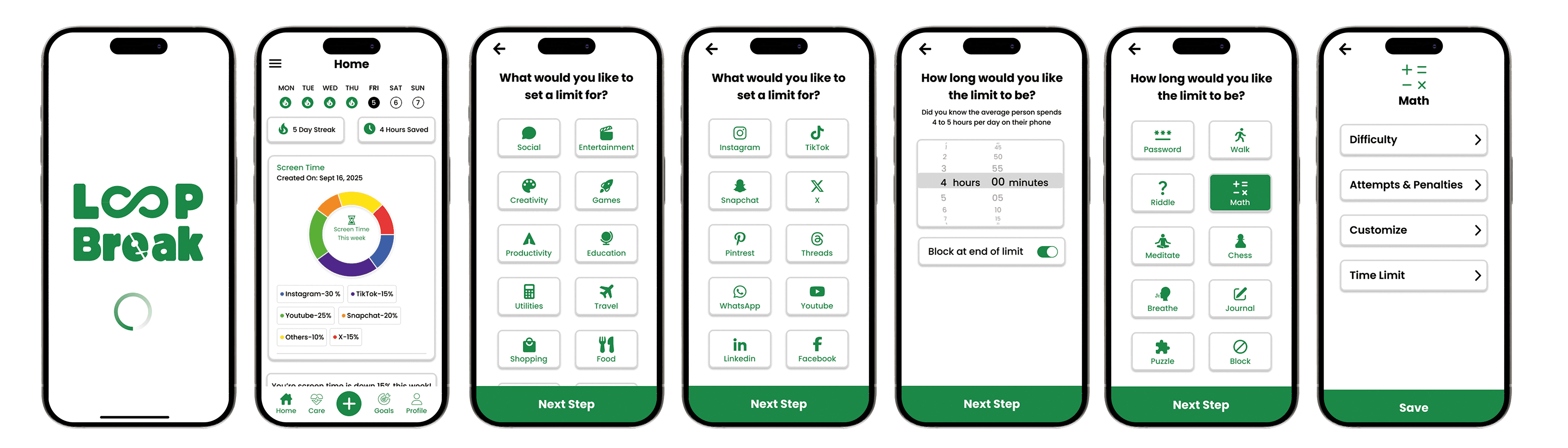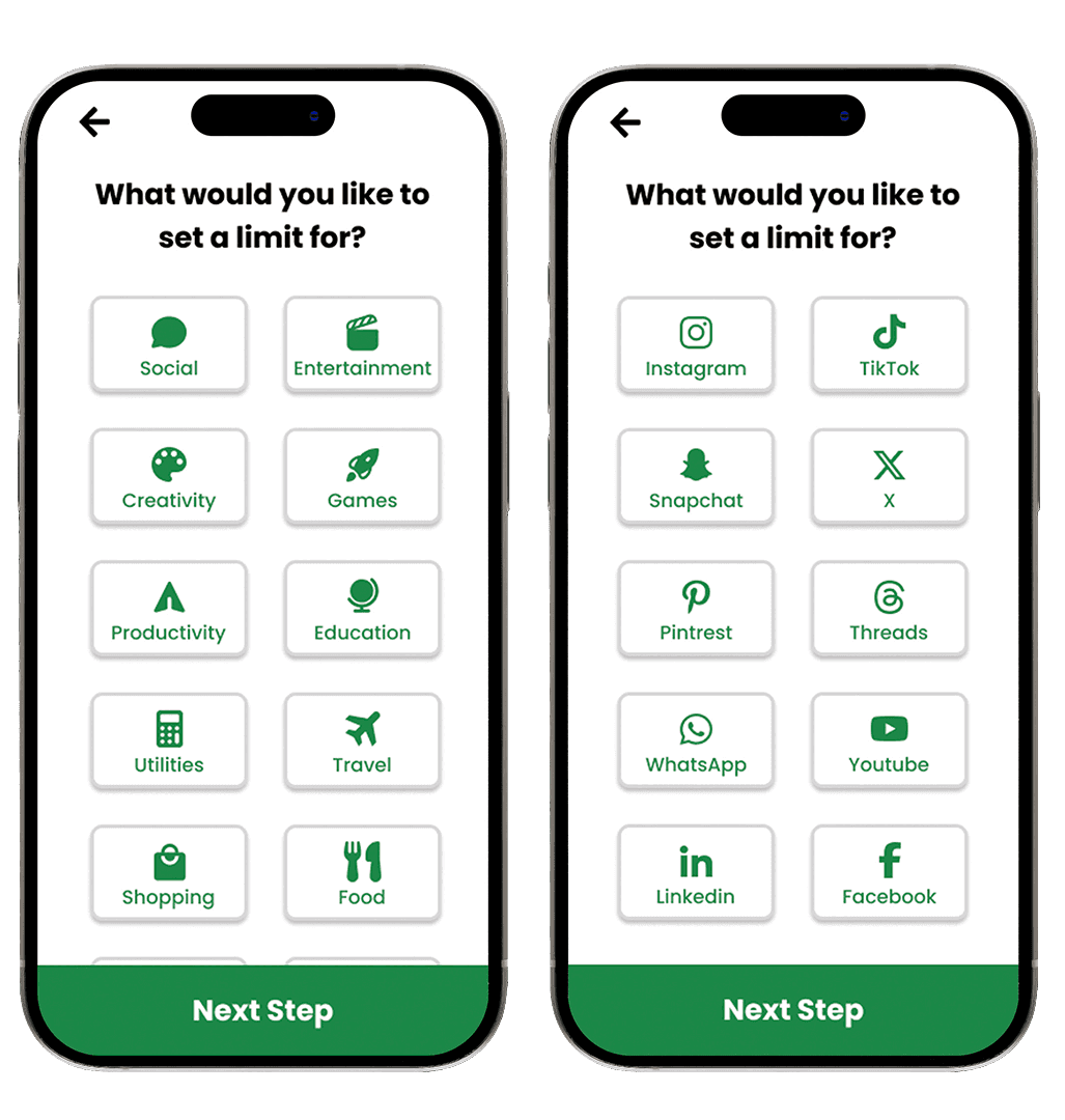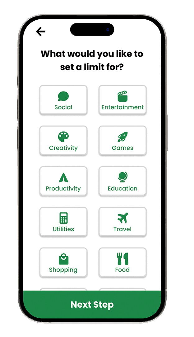 screen time tools. I created wireframes, wireflows, and high-fidelity